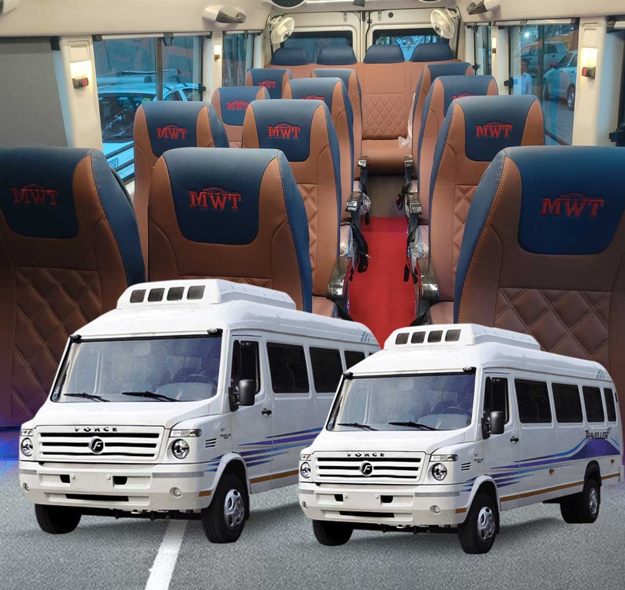 20 Seater tempo traveller has versatile features which make it perfect for comfortable group tour and convenience. Its spacious interior accommodates passengers with ample legroom and comfortable seating. Equipped with string AC vents at each seat, it ensures a pleasant environment regardless of weather conditions in travelling city. Sliding window panes allows to enjoy the scenic views while the travel. Forget all worries of your baggage as it has enough luggage space where you can bring your belongings without compromise. Safety features are very important point to consider before heading on a trip. The Force traveller 20 seater has all safety features as seat belts and sturdy construction as large wheels, robust engine. Equipped with ABS technology and power brakes, it prevents you from jerk and unfavourable conditions.
